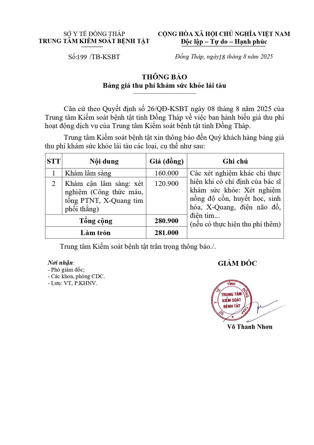Quyết định về việc ban hành cập nhật, bổ sung, điều chỉnh biểu giá thu phí hoạt động dịch vụ của Trung tâm Kiểm soát bệnh tật tỉnh Đồng Tháp Cập nhật, bổ sung, điều chỉnh biểu giá thu phí hoạt động dịch vụ của Trung tâm Kiểm soát bệnh tật tỉnh Đồng Tháp