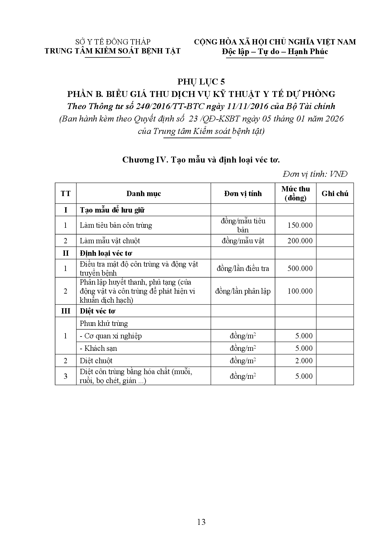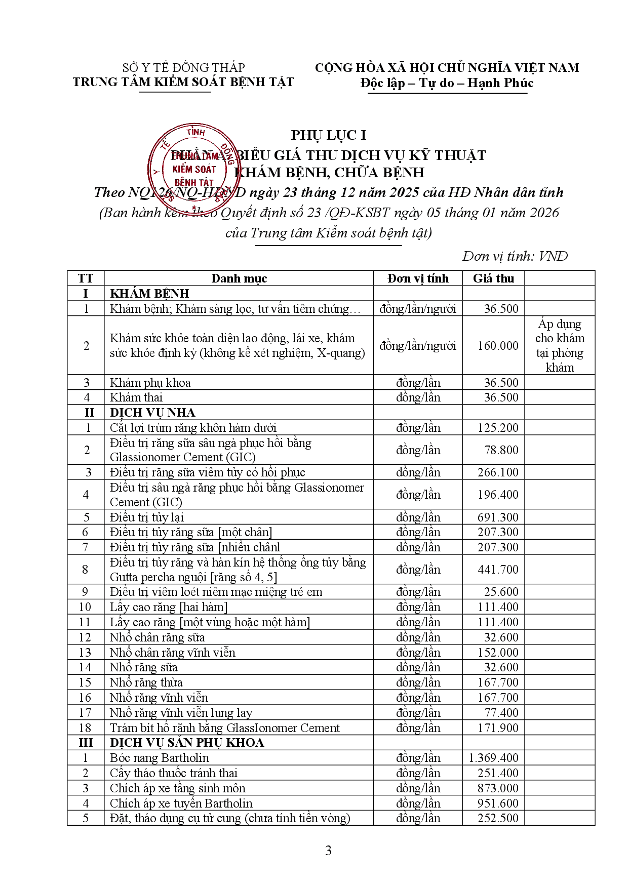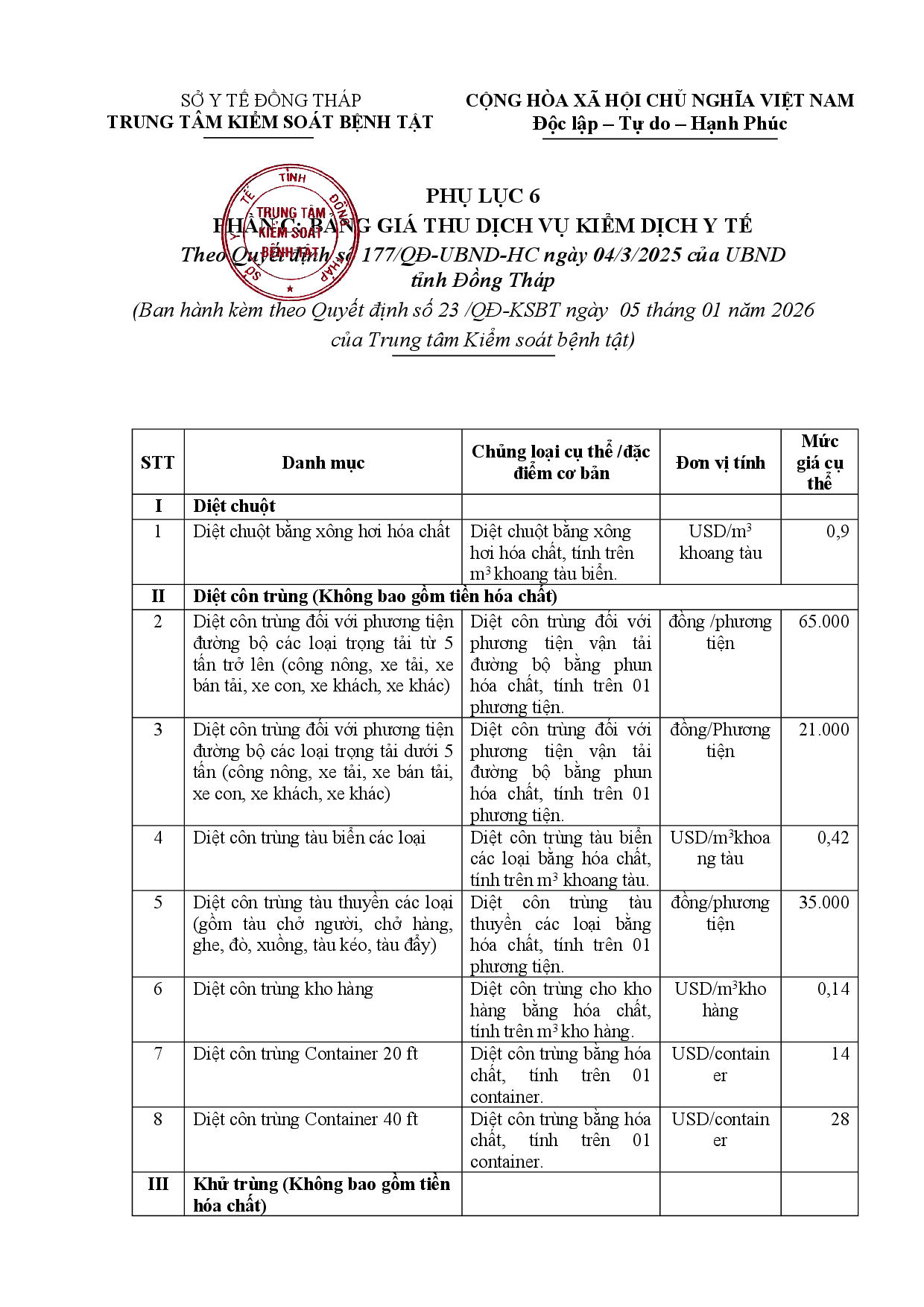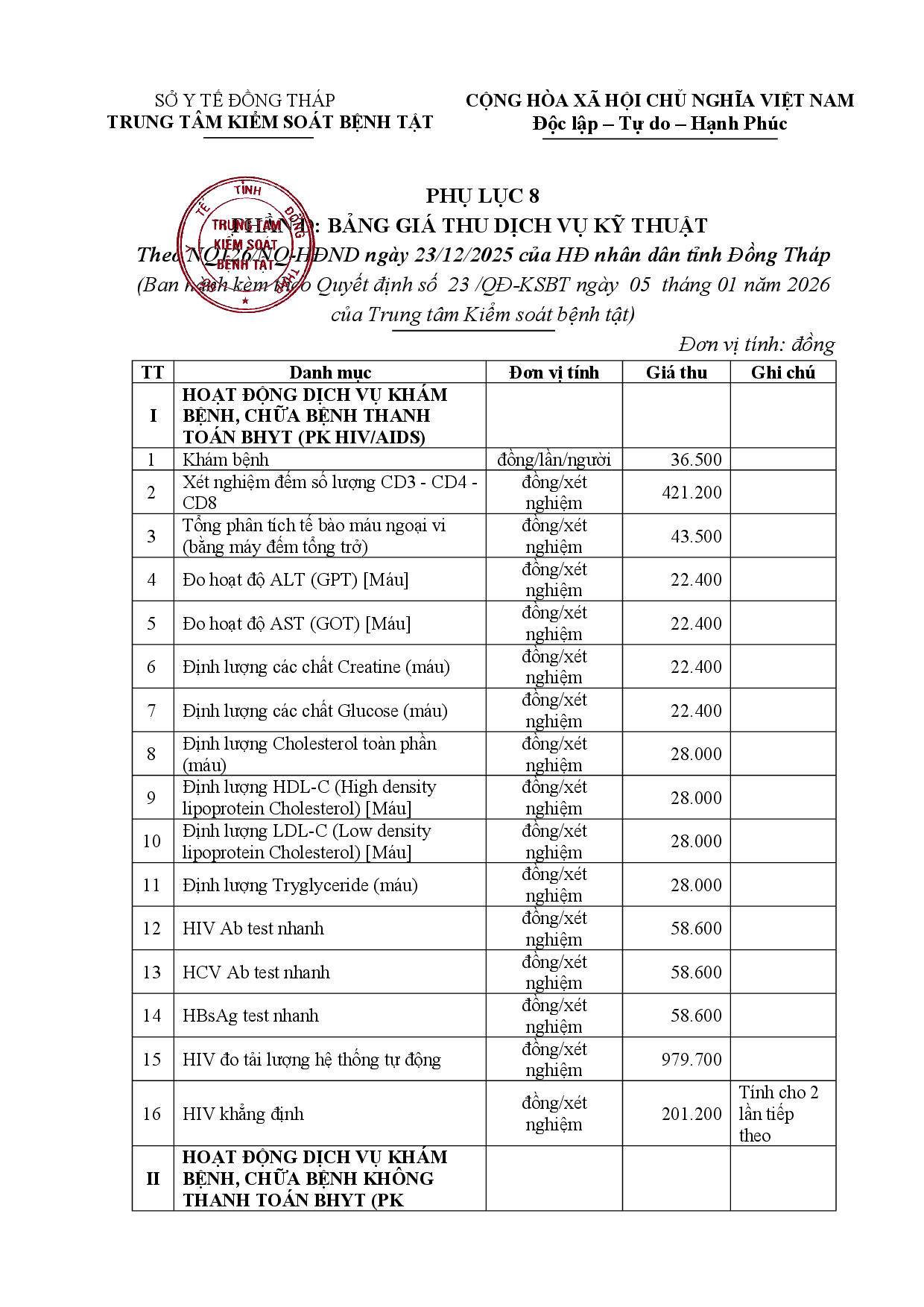 Quyết định về việc ban hành cập nhật, bổ sung, điều chỉnh biểu giá thu phí hoạt động dịch vụ của Trung tâm Kiểm soát bệnh tật tỉnh Đồng Tháp Cập nhật, bổ sung, điều chỉnh biểu giá thu phí hoạt động dịch vụ của Trung tâm Kiểm soát bệnh tật tỉnh Đồng Tháp