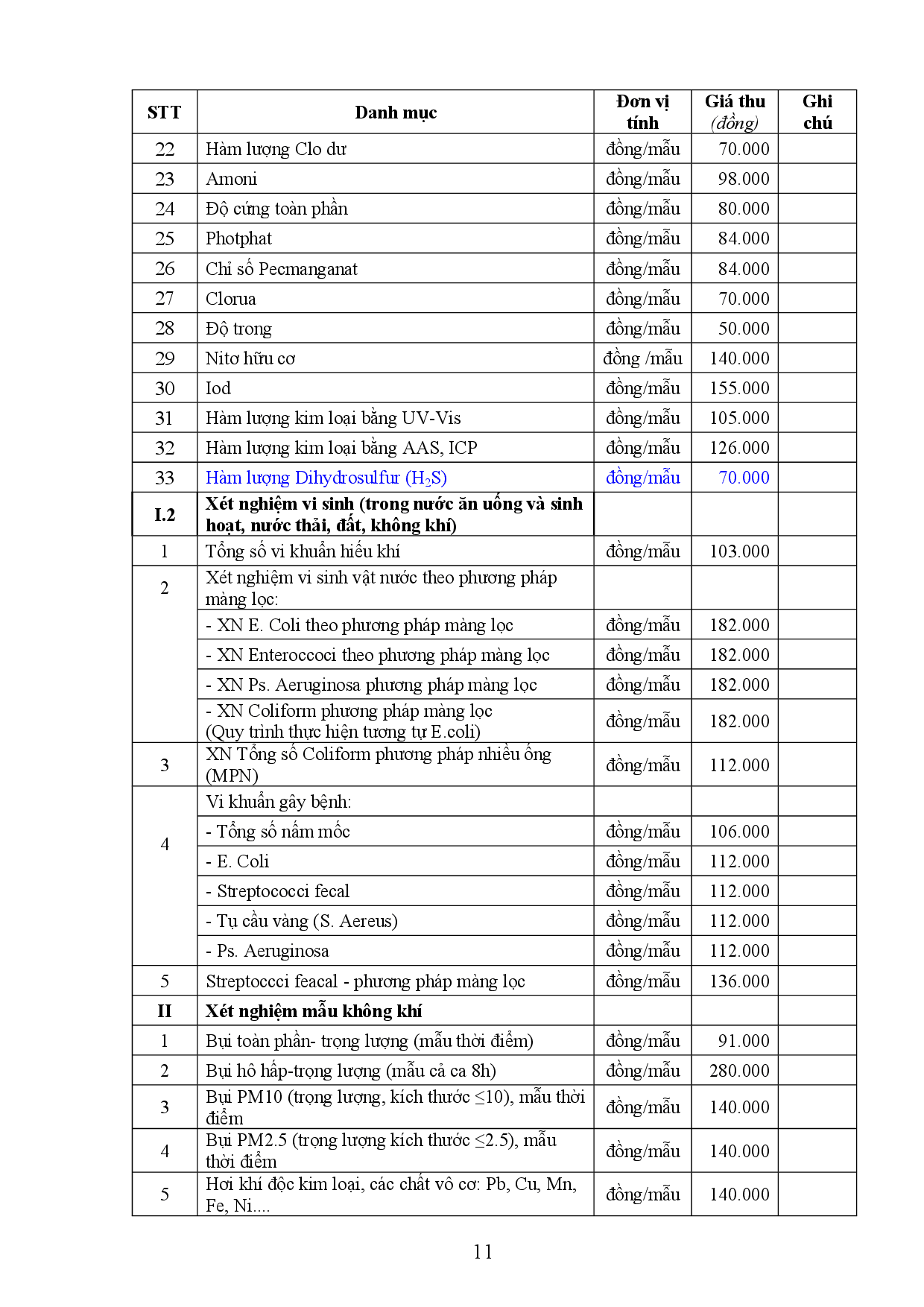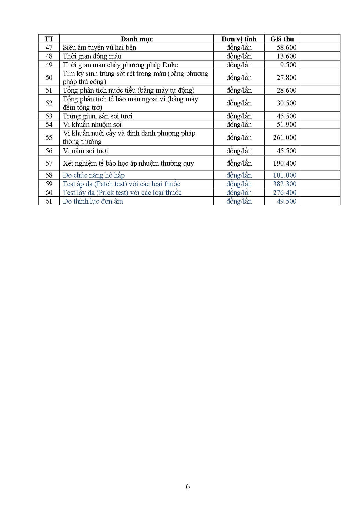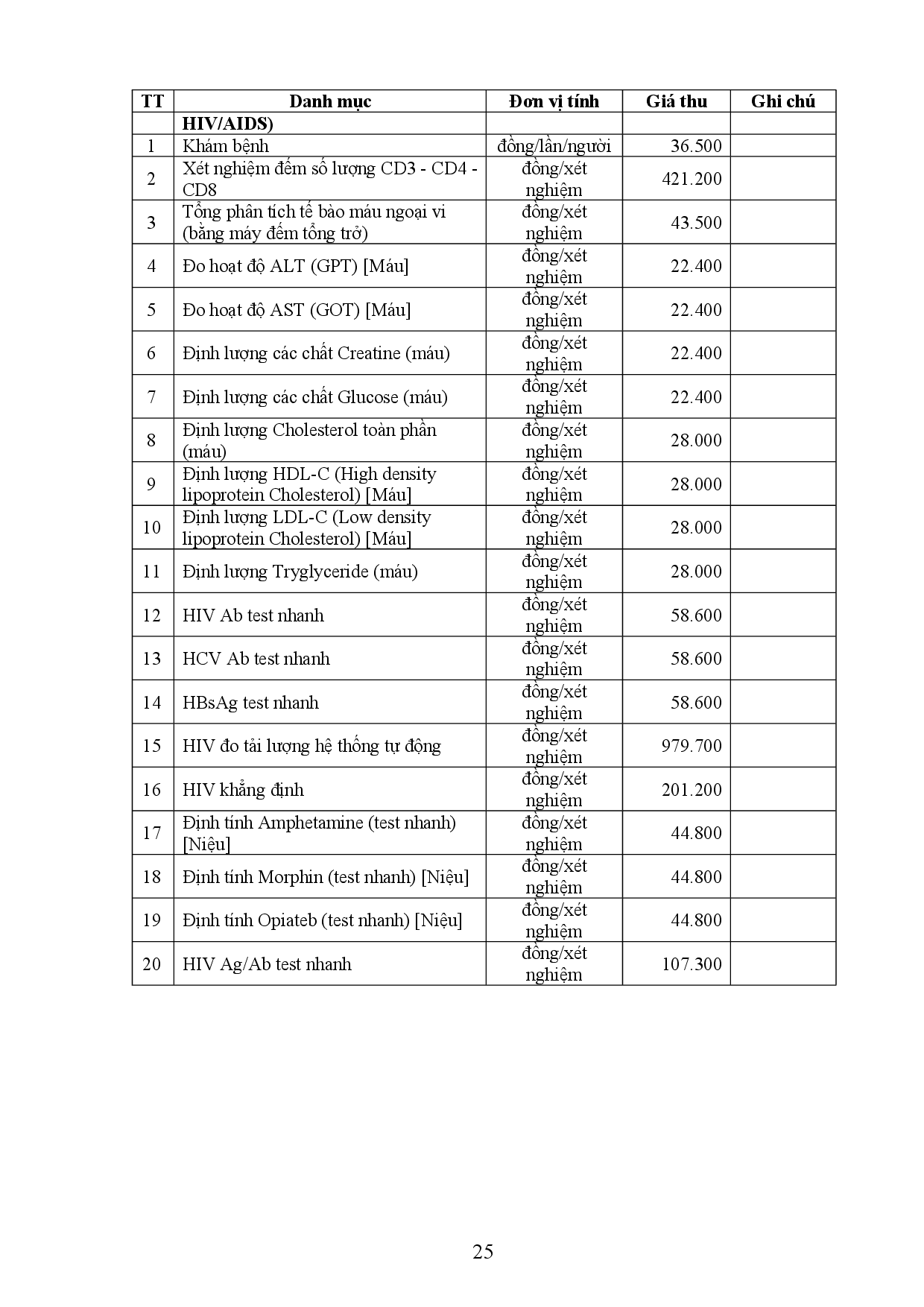 Bảng giá thu phí dịch vụ kỹ thuật của Trung tâm Kiểm soát bệnh tật Bảng giá thu phí dịch vụ kỹ thuật của Trung tâm Kiểm soát bệnh tật