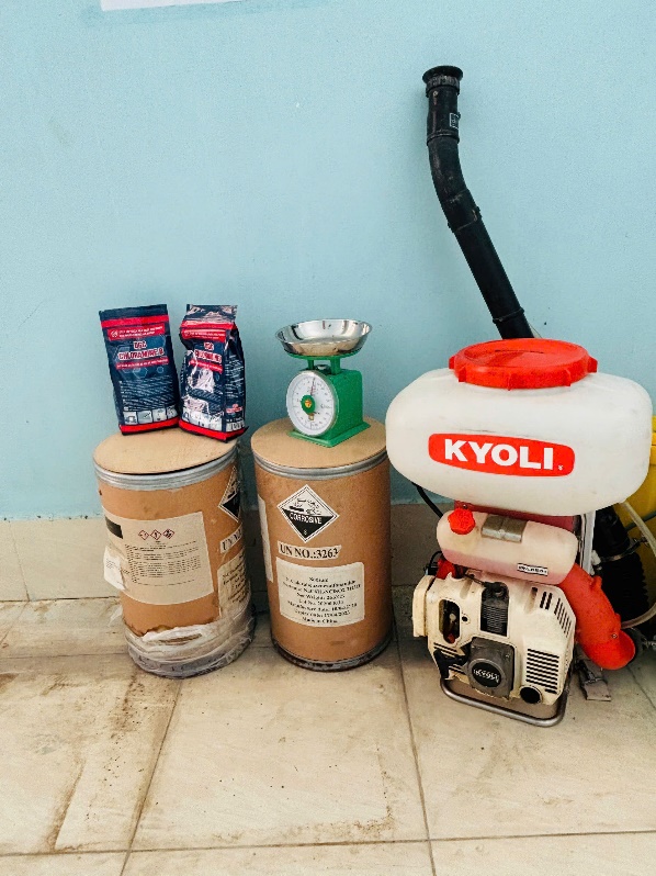Cán bộ Kiểm dịch y thực hiện công việc chuẩn bị máy móc, thiết bị và hoá chất sẵn sàng cho công tác phòng, chống dịch