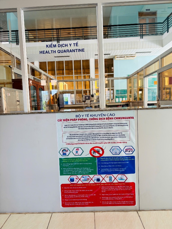 Song song đó, công tác truyền thông phòng bệnh được triển khai mạnh mẽ. Tại các luồng xuất nhập cảnh của trạm kiểm soát liên hợp tại cửa khẩu, cán bộ kiểm dịch đã dán poster tuyên truyền về bệnh Chikungunya. Nội dung tập trung vào việc hướng dẫn nhận biết triệu chứng bệnh, các biện pháp phòng tránh muỗi truyền bệnh và khuyến cáo khai báo y tế ngay khi có dấu hiệu nghi ngờ.