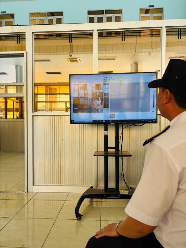 Cán bộ Kiểm dịch Y tế giám sát thân nhiệt hành khách nhập cảnh tại cửa khẩu