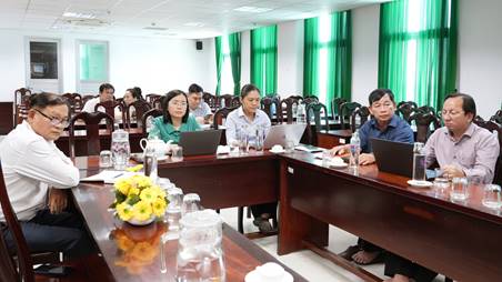 Quang cảnh hội nghị tại điểm cầu Sở Y tế tỉnh Đồng Tháp, ThS.BS. Phạm Thị Ngọc Thu (mặc áo xanh), Phó Giám đốc Sở Y tế chủ trì
