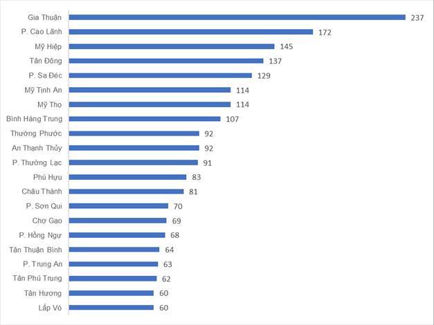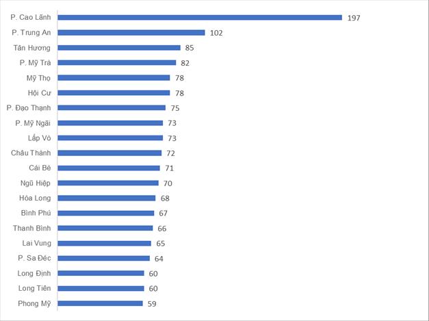 Phường/xã có số ca mắc TCM cao tính đến tuần 36