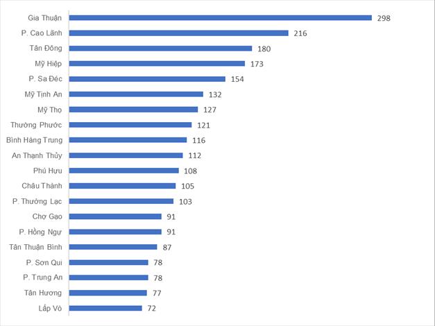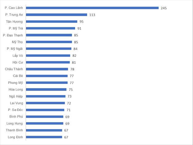 Phường/xã có số ca mắc TCM cao tính đến tuần 39