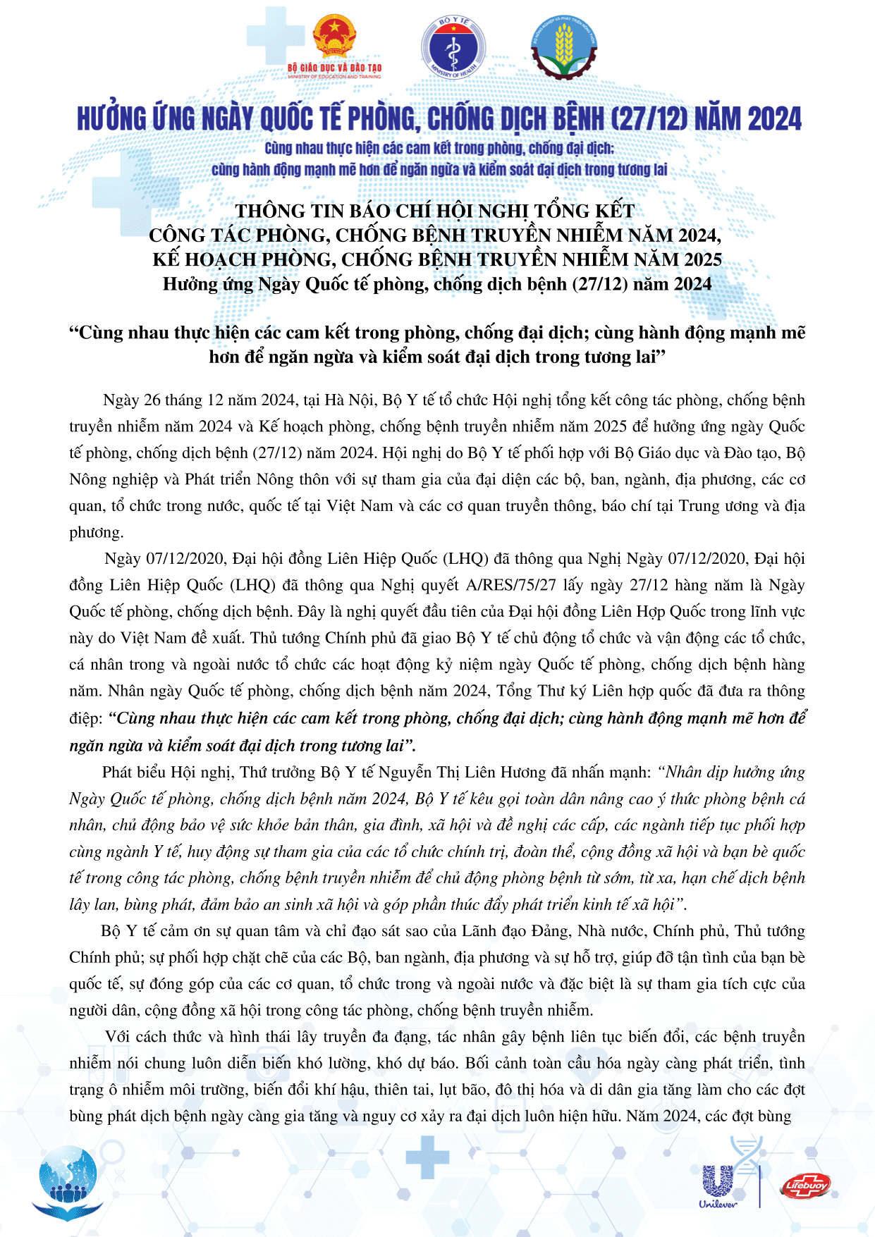 Hưởng ứng Ngày Quốc tế Phòng, Chống Dịch bệnh năm 2024