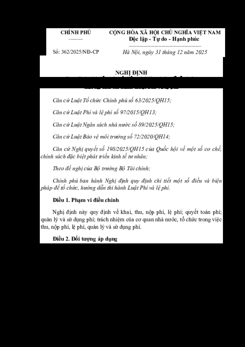 | Số hiệu | 362/2025/NĐ-CP | Cơ quan ban hành | Chính phủ |