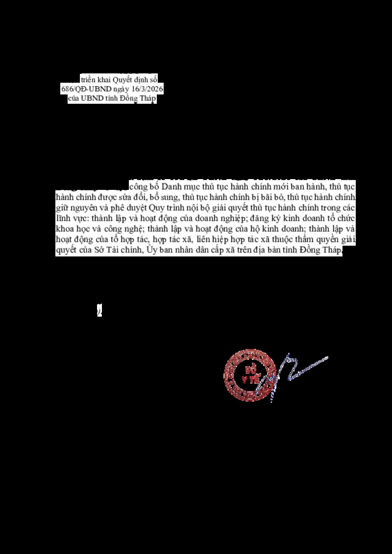 | Tiêu đề văn bản | V/v triển khai Quyết định số 686/QĐ-UBND ngày 16/3/2026 của UBND tỉnh Đồng Tháp | ||