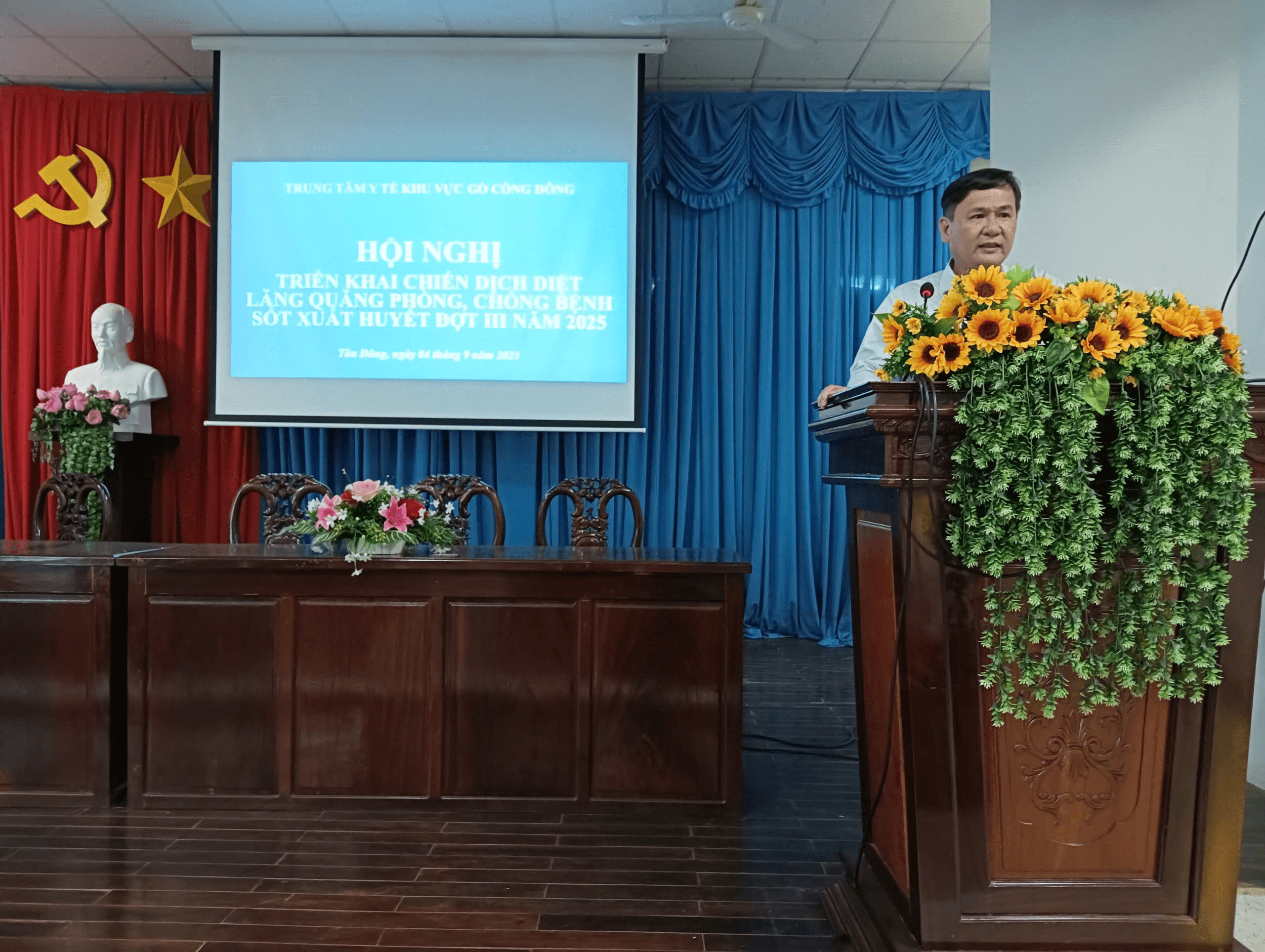 Ngày 04/9/2025, Trung tâm Y tế (TTYT) khu vực Gò Công Đông tổ chức Hội nghị triển khai Chiến dịch diệt lăng quăng phòng, chống dịch bệnh sốt xuất huyết (SXH) đợt III năm 2025. Hội nghị có sự tham dự của BSCKII. Võ Thanh Nhơn, Giám đốc Trung tâm Kiểm soát bệnh tật; BSCKI. Phạm Văn Thạch, Giám đốc TTYT khu vực Gò Công Đông cùng các lãnh đạo phòng khoa thuộc TTYT khu vực Gò Công Đông; Trưởng trạm Y tế xã/Phó trưởng trạm phụ trách trạm Y tế xã. Về phía lãnh đạo chính quyền địa phương, có sự tham dự của ông Tạ Văn Hiếu, Phó Chủ tịch UBND xã Tân Hòa; ông Võ Văn Biền, Phó Chủ tịch UBND xã Gia Thuận.