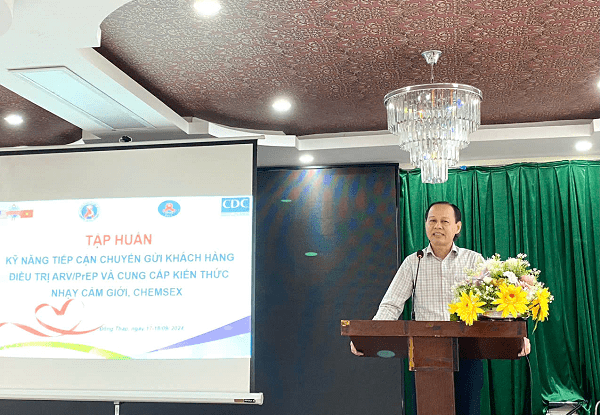 Trong 2 ngày 17-18/9/2024, Trung tâm Kiểm soát bệnh tật Đồng Tháp phối hợp với CDC Hoa Kỳ thông qua Dự án EPIC tổ chức Tập huấn kỹ năng tiếp cận chuyển gửi khách hàng điều trị PrEP/ARV và cung cấp kiến thức nhạy cảm và chemsex cho hơn 40 học viên là bác sĩ, cán bộ chương trình HIV, cán bộ các phòng VCT, cán bộ phòng khám PrEP, nhóm CBO và các đồng đẳng viên. BS.CK2. Phan Thanh Tùng, Giám đốc Trung tâm Kiểm soát bệnh tật đã đến dự.