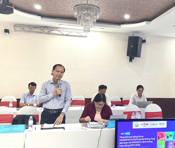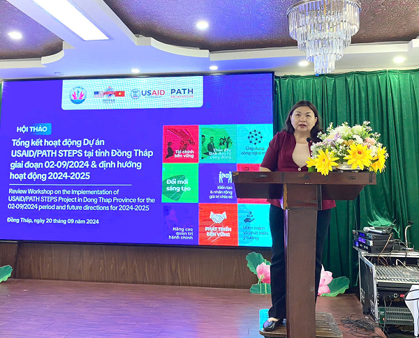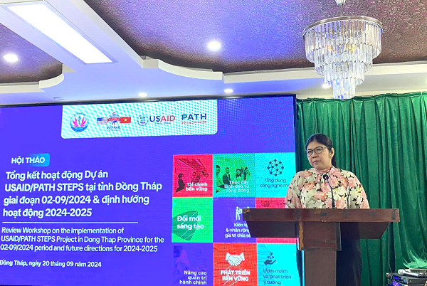 Vừa qua, ngày 20/9/2024, Sở Y tế Đồng Tháp phối hợp với Dự án USAID/PATH STEPS tổ chức Hội thảo tổng kết hoạt động Dự án STEPS tại tỉnh Đồng Tháp, từ tháng 01 đến tháng 9/2024 và định hướng hoạt động giai đoạn 2024 - 2025. DS.CK1. Lâm Thị Ngọc Kim, Phó Giám đốc Sở Y tế chủ trì Hội thảo.