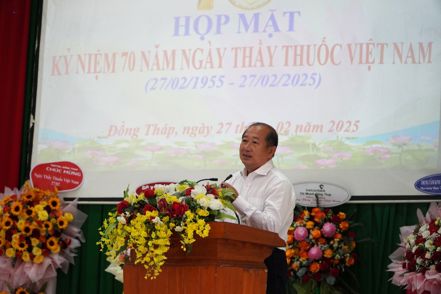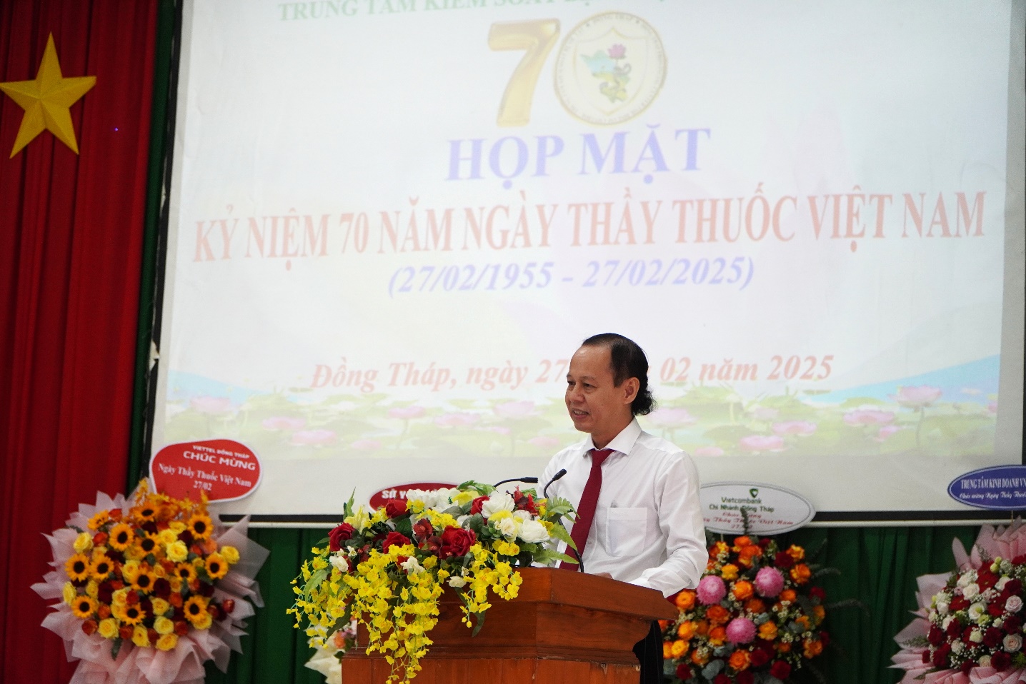 Phát biểu tại buổi họp mặt, BS.CK2. Đoàn Tấn Bửu, Giám đốc Sở Y tế Đồng Tháp ghi nhận, biểu dương và đánh giá cao thành quả mà Trung tâm Kiểm soát bệnh tật đạt được trong nhiều năm qua. Đồng thời, bày tỏ biết ơn và tri ân những cống hiến, đóng góp to lớn, thầm lặng, vất vả, hy sinh của các thế hệ thầy thuốc cho công tác y tế dự phòng tỉnh nhà, tin tưởng và mong rằng Trung tâm Kiểm soát bệnh tật tiếp tục là đơn vị nồng cốt, trụ cột của ngành Y tế trong công tác dự phòng, phòng, chống dịch bệnh và tiêm chủng, cũng như các hoạt động thường xuyên khác