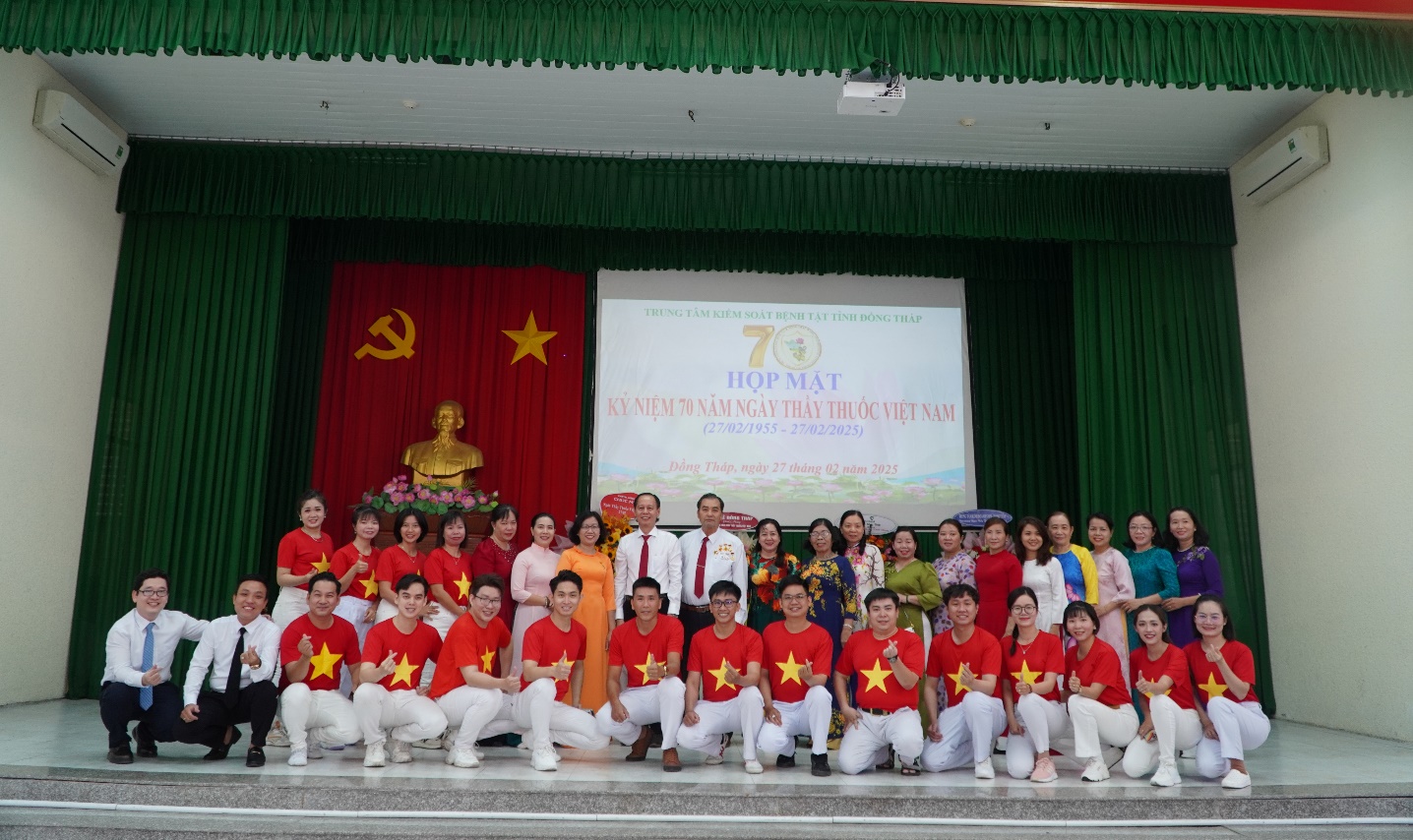 Chiều ngày 27/02/2025, Trung tâm Kiểm soát bệnh tật Đồng Tháp tổ chức Họp mặt kỷ niệm 70 năm Ngày Thầy thuốc Việt Nam (27/02/1955 - 27/02/2025). Tham dự có BS.CK2. Đoàn Tấn Bửu, Giám đốc Sở Y tế Đồng Tháp; BS.CK2. Phan Thanh Tùng, Giám đốc Trung tâm Kiểm soát bệnh tật; cùng dự có các bác sĩ là lãnh đạo, nguyên lãnh đạo qua thời kỳ tham dự cùng đội ngũ y, bác sĩ, cán bộ y tế, người lao động và các thế hệ thầy thuốc của Trung tâm Kiểm soát bệnh tật.