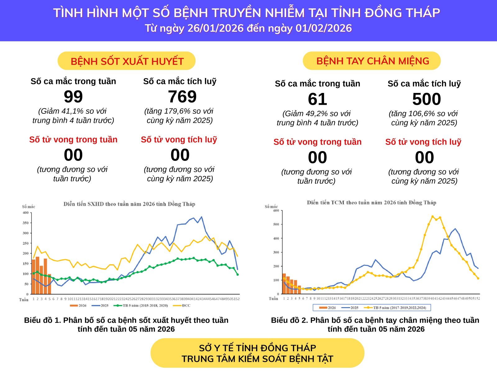 Tình hình một số bệnh truyền nhiễm tại tỉnh Đồng Tháp từ 26/1/2026 đến 01/02/2026